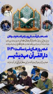 محفل قرآنی نوجوان در ماه رمضان روزهای فرد به مدت نیم ساعت دعوت همگانی از نوجوانان 🌹 و …جوایز نقدی برای همه حافظان سوره واقعه در پایان ماه مبارک